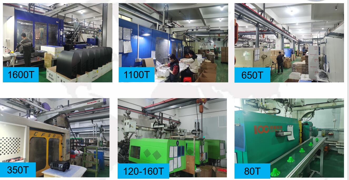 We have twenty units of 80T-1600T injection molding machines.